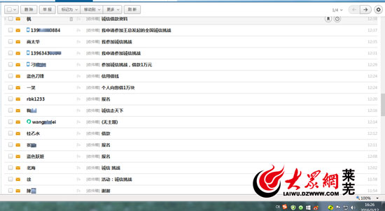 大众网记者注意到,有网友发邮件申请留言“君子养心 莫善于诚”,向报名邮箱提供报名诚信挑战信息;还有网友留言给王勇峰:“我们急需生活费!希望能借10000元救急,本人保证准时归还!”