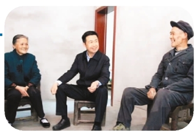 全国人大代表、安康市委书记郭青(中)在农民家中