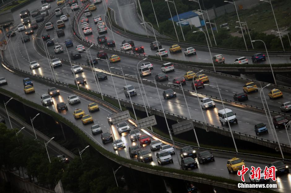 大批车辆行驶在高速公路连接南京市区的高架道路上。 中新社记者 泱波 摄