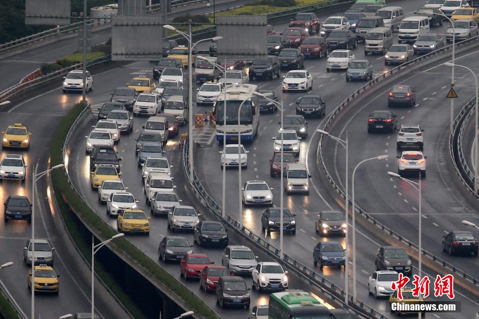大批车辆行驶在高速公路连接南京市区的高架道路上。 中新社记者 泱波 摄