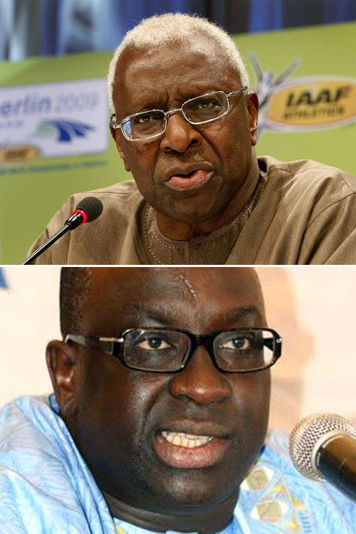 上图为国际田径联合会前主席拉明·迪亚克;下图为其子帕帕·马萨塔·迪亚克。(图片来源:网页截图)