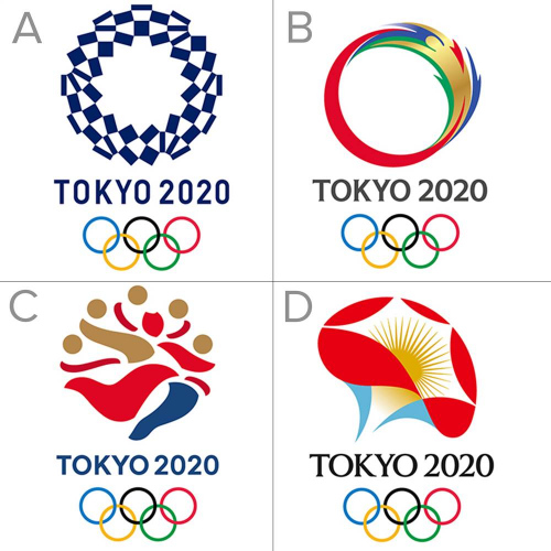 4月25日,东京奥组委公布了新会徽。4幅最终候选作品中,以日本传统颜色蓝色的矩形组合构成的作品A“组市松纹”获选,设计者为野老朝雄。