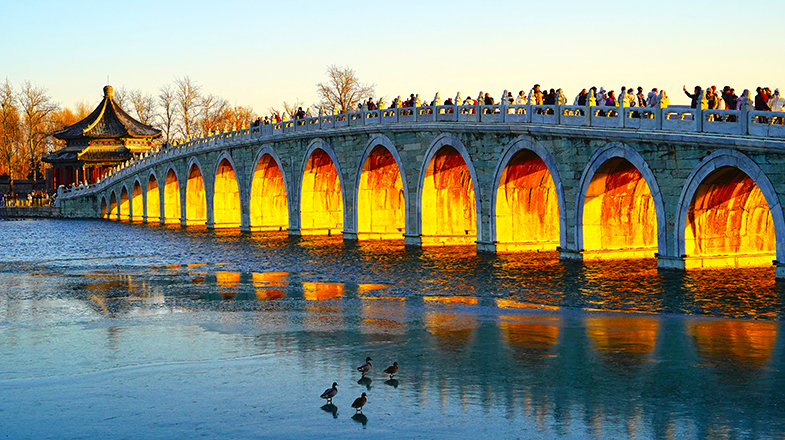 哈尔滨:游客打卡巨型雪雕“雪人先生”