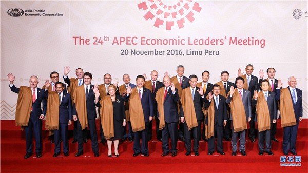 11月20日,亚太经合组织第二十四次领导人非正式会议在秘鲁利马举行。这是会议期间,国家主席习近平同其他亚太经合组织成员经济体领导人、代表合影。 新华社记者 丁林 摄