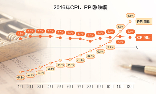 数据显示,2016年12月,PPI环比上涨1.6%,其中,生产资料价格上涨2.0%,涨幅与上月持平;生活资料价格上涨0.3%,涨幅比上月扩大0.1个百分点。