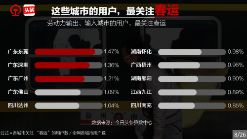 报告分析称,劳动力输出、输入城市的用户,最关注春运。