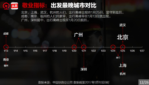 根据铁总的数据,该报告还通过“出发最晚城市对比”,从而得出“敬业指标”。