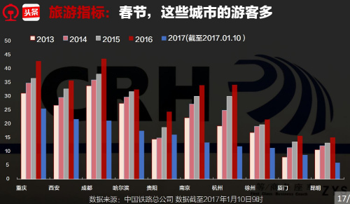 根据铁总的数据,该报告列出了春节期间游客较多的城市。