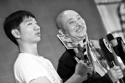 发布会现场,长相和父亲陈佩斯酷似的陈大愚还以《阳台》和《托儿》两部陈氏喜剧的复排导演和主演身份,带领着青年演员们现场进行了表演训练;陈佩斯也加入其中,在儿子的“导演”下,和年轻人一起玩起“传递表情”的互动表演,不亦乐乎。看到这些当年懵懂无知,有的让他曾经恨不得“踹上两脚”甚至想要放弃的年轻人,如今已经成长为在全国各地巡演的“小戏骨”,陈佩斯乐得合不拢嘴。