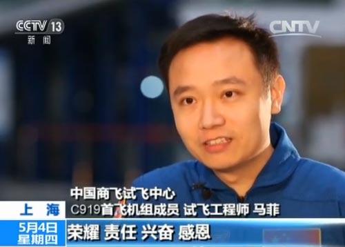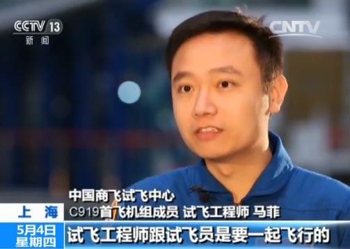 在首飞的5人机组中有两名年轻人,他们的工作叫做试飞工程师。虽然他们并不是飞行员,但同样不可或缺。他们的工作是怎样的呢?我们也独家专访了两名试飞工程师中的一位,他叫马菲,是中国商飞试飞中心的一位80后试飞工程师。