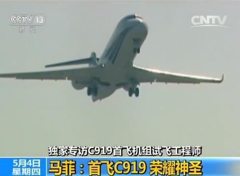 今天,与首飞飞机一起翱翔蓝天的5人机组第一次出现在央视记者的镜头前。
