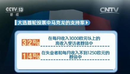 法国民调机构益普索的民调显示,马克龙与勒庞吸引的主要选民群体截然不同。在23号举行的大选首轮投票中,33%的企业高层和白领、30%拥有高等学历的人选择支持马克龙。在每月收入3000欧元以上的高收入受访者群体中,马克龙的支持率也达到了32%。但在失业者和每月收入不到1250欧元的群体中,支持马克龙的只有14%。