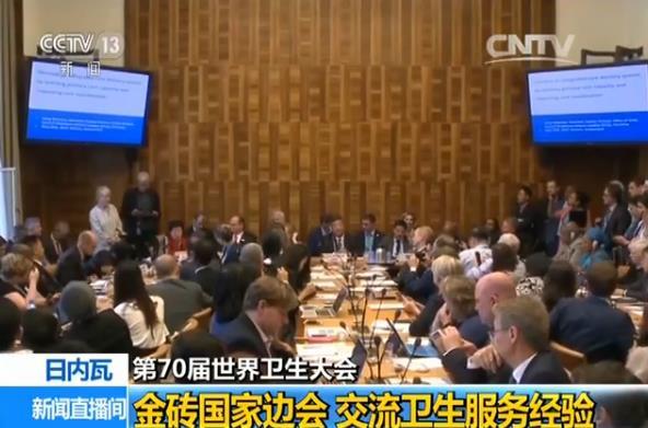 央视网消息:24号,第70届世界卫生大会继续在日内瓦万国宫进行。当天,中国代表团召开了关于整合型卫生体系的金砖国家边会,进一步探讨金砖国家卫生事业发展经验和做法。