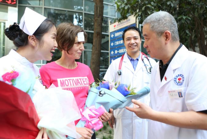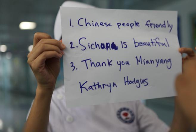 央视网消息:九寨沟地震中,加拿大游客Kathryan头部受伤。震后2小时,她被送往九寨沟县医院初步医治;震后25小时,被转入300公里之外的绵阳市中心医院。经过当地医生科学救治和细心照料后,12号下午Kathryan康复出院,准备回国。临走时,Kathryan激动地点赞中国救援,并写下:“中国朋友很友好,四川依然美丽,谢谢你,绵阳!”(央视记者 李艳君)