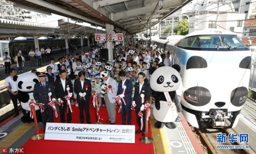 除了上述这些,就在本月初,日本大阪府,西日本铁路公司推出的大熊猫主题特快列车举行发车仪式,吸引了大批群众围观。