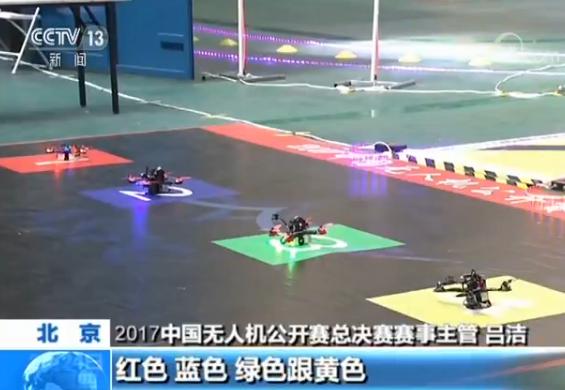 2017中国无人机公开赛总决赛赛事主管 吕洁:我们参赛选手是在我们起飞点是每组是四名选手,然后这四名选手我们叫四个号位,每个号位有一个颜色,红色、蓝色、绿色跟黄色分别代表一样序号,那么我们关注哪一位选手,就可以盯住他的这个尾灯就可以看他全程的这个比赛了。