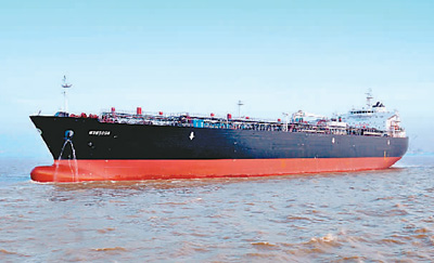 图为上海外高桥造船有限公司自行研发设计的8.5万立方米超大型全冷式液化石油气运输船。