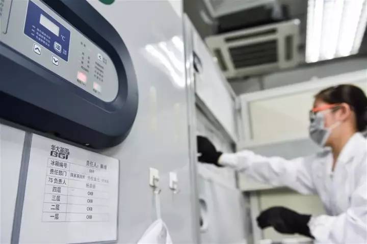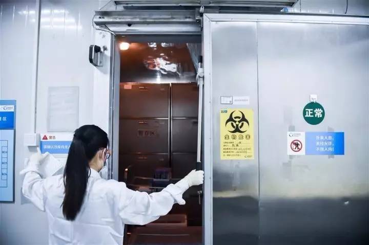 工作人员在国家基因库的超低温冰箱前