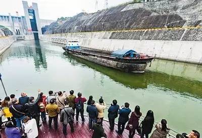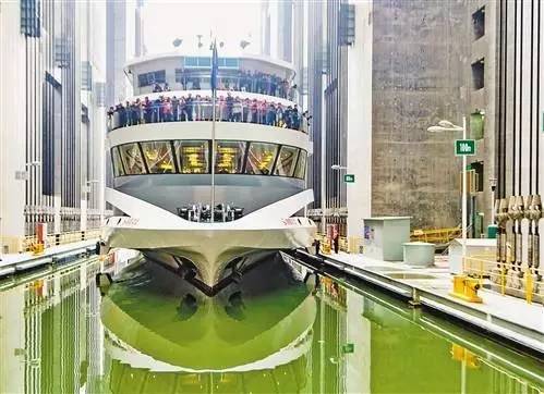 游客乘游轮通过三峡升船机