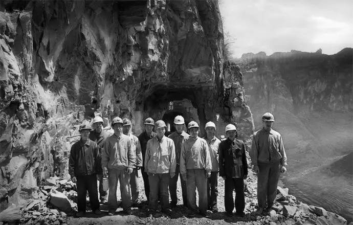 筑路英雄们在工地合影