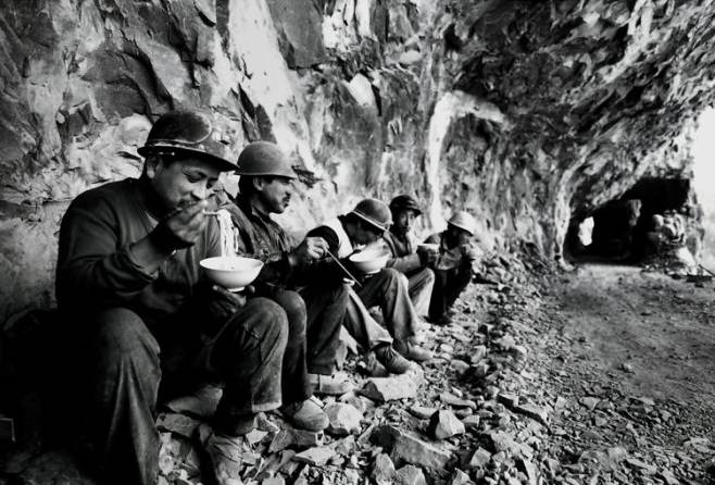 筑路英雄们在简单的进餐