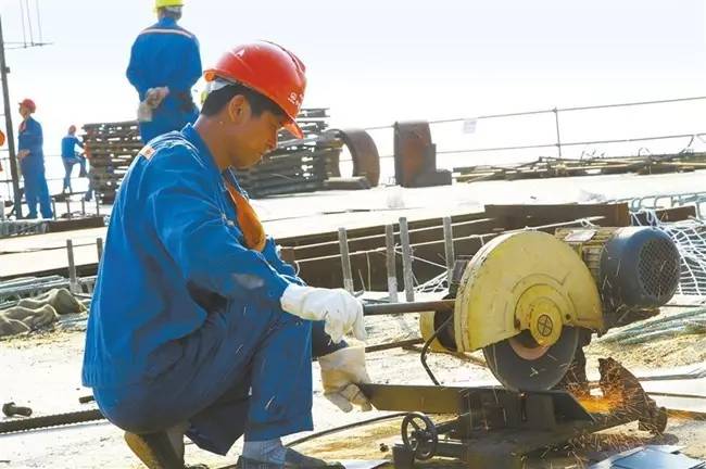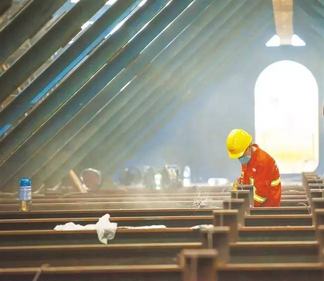切割的钢花与工人的汗水谱写的工地之歌