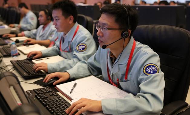 飞控试验队员在紧张工作