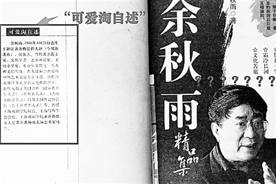 有网友指出,篱苑书屋一本《余秋雨精品集》的作者介绍部分却印着“可爱淘自述”字样