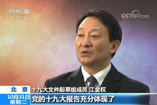 十九大文件起草组成员 江金权:党的十九大报告充分体现了政治报告的特点,最突出的一点就是把强化党的领导、加强党的建设贯穿全篇,成为全篇的纲和魂。