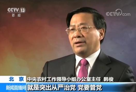 中央农村工作领导小组办公室主任 韩俊:党的十九大报告提出了新时代党的建设指导方针、总体布局和基本要求,就是突出从严治党、党要管党,一定要把我们的党建设成我们中国特色社会主义事业坚强的领导核心,只有这样党和国家的事业才能够有坚强的政治保障。