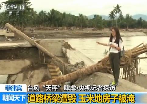 央视记者 黄铮铮:我现在的位置是在菲律宾棉兰老岛北拉瑙省的萨尔瓦多市。这个市是受台风“天秤”影响最严重的地方之一,经过洪灾之后,我所在的这条河的河堤完全坍塌,桥梁也已被上游冲击下来的植物和洪水损毁。