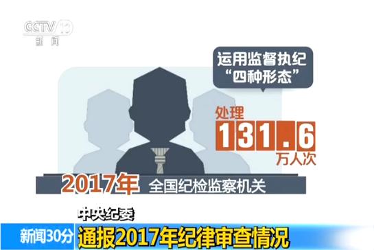 央视网消息:今天上午,中央纪委监察部网站发布了中央纪委2017年全国纪检监察机关纪律审查情况,用详实的数据展示了过去一年纪律审查的成绩单。