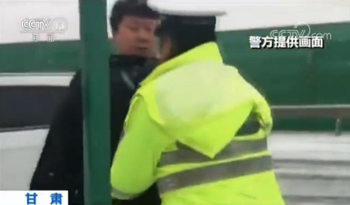 甘肃交警怀抱婴儿 雪天疾行1公里就医