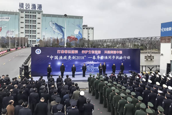 会议当天,在上海、江苏等七地举行了“中国渔政亮剑2018”—春季禁渔同步执法行动启动活动。本次同步执法行动由渔政、公安、水警、海事、边防、海警等部门执法力量组成渔政特编船队,有关21个省(自治区、直辖市)渔业主管部门组织近千艘执法船艇、近万名执法人员在辖区内开展同步执法,是迄今为止参与部门最多、规模最大、涉及范围最广的内陆渔政联合执法行动,力求覆盖禁渔区、禁渔期全范围、全时段。