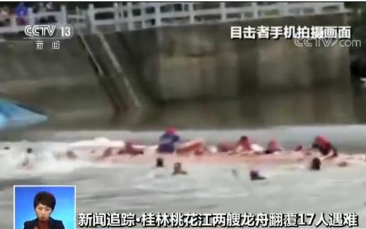 央视网消息:从手机拍摄的这段视频中,我们可以看到,当时一条载有约30人的龙舟,在江面上逆着水流行进,周围还有人为他们加油呐喊。