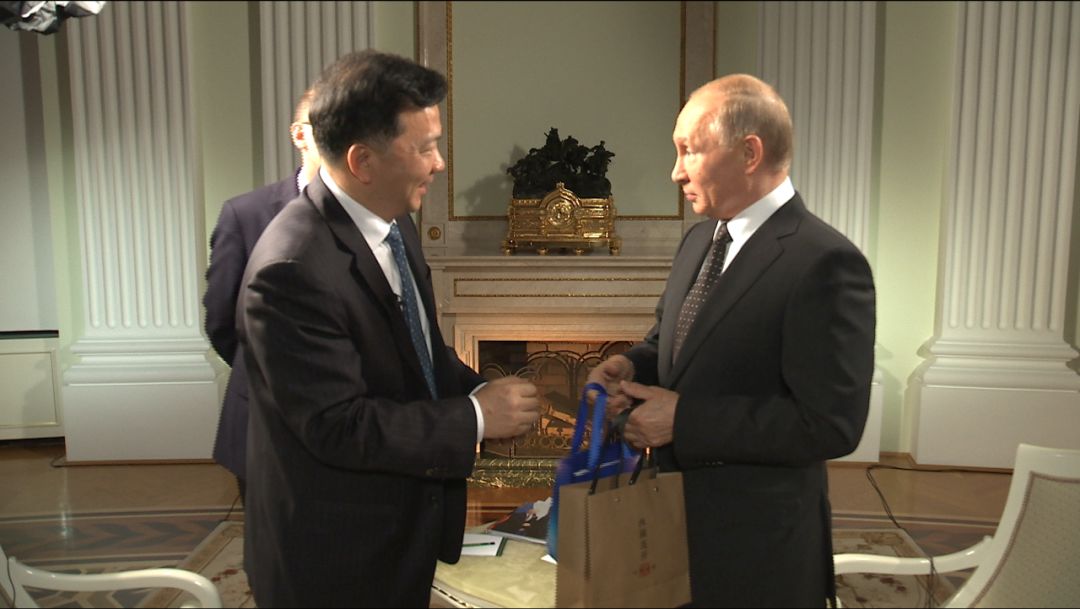 当地时间5月31日晚,在出席上海合作组织成员国元首理事会青岛峰会并对中国进行国事访问前夕,俄罗斯联邦总统普京在莫斯科克里姆林宫接受了中国中央广播电视总台台长慎海雄的独家专访。