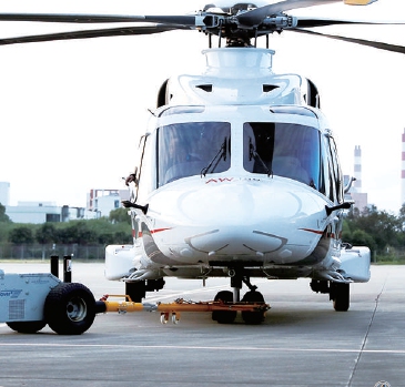 首届中国国际进口博览会上的展品AW189直升机20日从马来西亚飞抵上海,入驻智能及高端装备展区。 (新华社发)