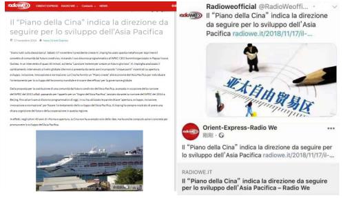 意大利Radio We电台网站(facebook账号、twitter账号)2018年11月17日转发