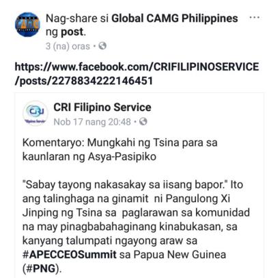 菲律宾DZME电台facebook账号2018年11月18日转发