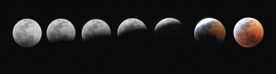 1月20日在美国洛杉矶拍摄的“超级红月亮”月全食过程(拼版照片)。新华社记者 李颖摄