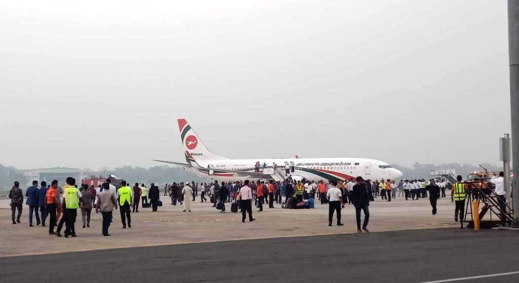 据现场目击者称,这架从达卡经吉大港前往迪拜的飞机于当地时间周日下午5点40分降落在该国际机场。