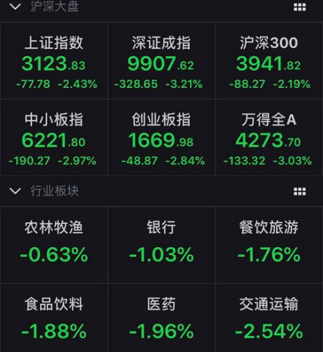 截至收盘,沪指收报3123.83点,跌幅2.43%;深成指收报9907.62点,跌幅3.21%;创业板指收报1669.98点,跌幅2.84%。两市成交共计7334亿元,比上一交易日有所放大。外资合计净流出12.1亿元。其中沪股通流出3.1亿元;深股通流出9亿元。