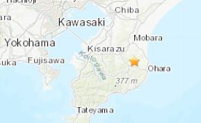 中新网5月25日电 据美国地质勘探局网站消息,北京时间25日14点20分,日本千叶县发生5.0级地震,震源深度30.4千米。