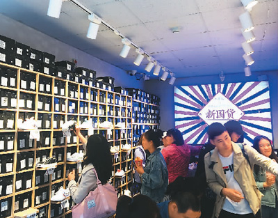 消费者在挑选国货品牌“飞跃”。本报记者 王俊岭摄