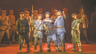 该剧的音乐大气磅礴、气势恢宏又兼具浪漫色彩。在国家大剧院音乐艺术总监、管弦乐团首席指挥吕嘉的执棒下,广州交响乐团进行了动人的演绎。湘江战役的惨烈、勇夺泸定桥前240里的奔袭、翻雪山、过草地的艰苦卓绝等都化作了震撼心灵的旋律。