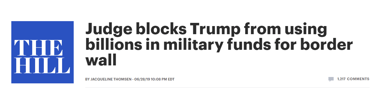 今年2月,特朗普政府宣布全国进入紧急状态,以此挪用国会用于其他计划的67亿美元资金建造边境墙。但此事遭到包括加利福尼亚州在内的多个州和团体的质疑。28日的裁决则将阻止政府动用25亿美元军费用于修建边境墙。