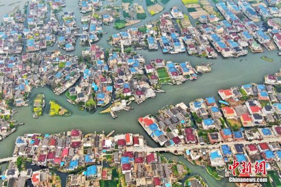 资料图,航拍一农村垛田和民居,星罗密布犹如“水上迷宫”。中新社记者 泱波 摄