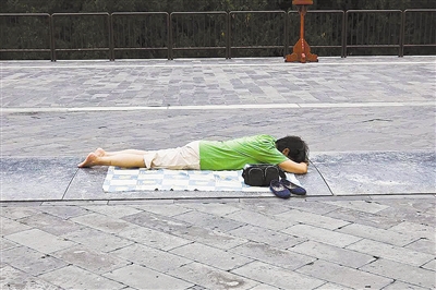 随着气温的逐渐升高,你会看到这样的情景——全副武装的大爷大妈躺在晒得滚烫的石头上进行“石疗”,如果你见到这个就啧啧称奇,那说明你的见识还是太少。在各色各样的健身形式中,街头健身可以说是颇为酷炫的一种。所谓“高手在民间”,尤其早晨去公园锻炼,我们经常会看到有人挺直后背使劲往树上撞,以期达到舒筋活血的目的;有人把头吊着不断晃动身体,据称能锻炼颈椎;更有甚者三五成群,展示着承接地气的“爬行健身”。