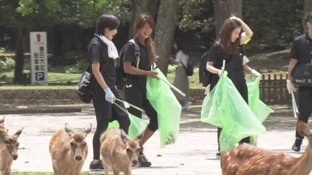 鹿误食塑料袋而死亡的例子接连不断,引起相关组织的重视。10日,奈良公园时隔8年,再次在公园内开展捡垃圾活动,共140名志愿者参加了活动。
