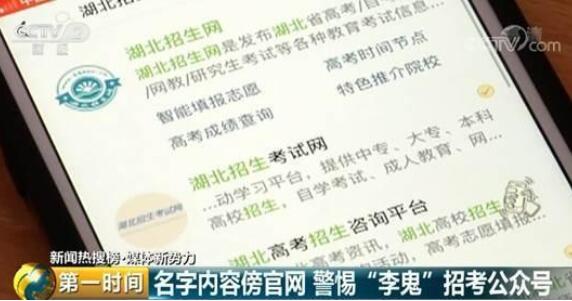 名字内容傍官网,这些微信公众号,真是让人防不胜防。而业内人士表示,这些仿冒、伪造正规招生考试院的微信公众号,极有可能会存在招生骗局,而考生的信息也面临泄露的风险。那么,这种现象又该如何治理呢?